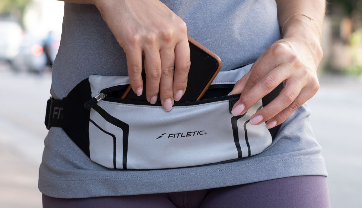 FITLETICのランニングベルトの中で最もコンパクトながら、大きめのスマートフォンも収納可能な伸縮性を備えています。